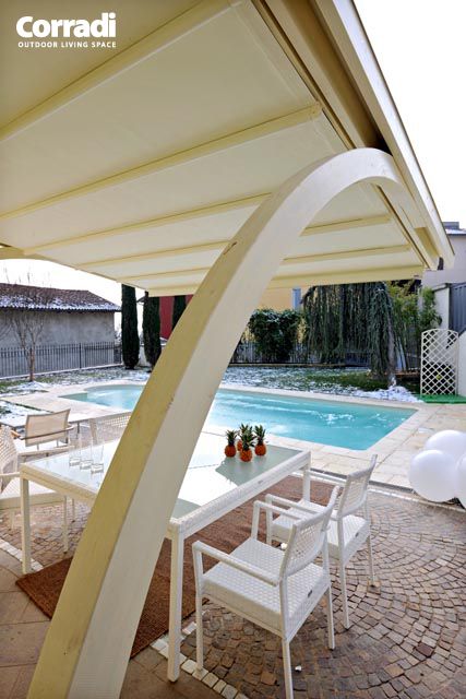 PergotendaArko Pergotenda® Pergotenda® Arko est fixée à un mur de support, sans nécessité de poteaux au sol. Pergotenda® Arko Pergotenda® Arko est fixée à un mur de support, sans nécessité de poteaux au sol. Sinueuse élégance Réalisée en bois, elle protège et meuble avec un raffinement original tous les espaces extérieurs. Couleurs Anthracite Ivoire Blanc Gris Ral® Châtaignier Noyer