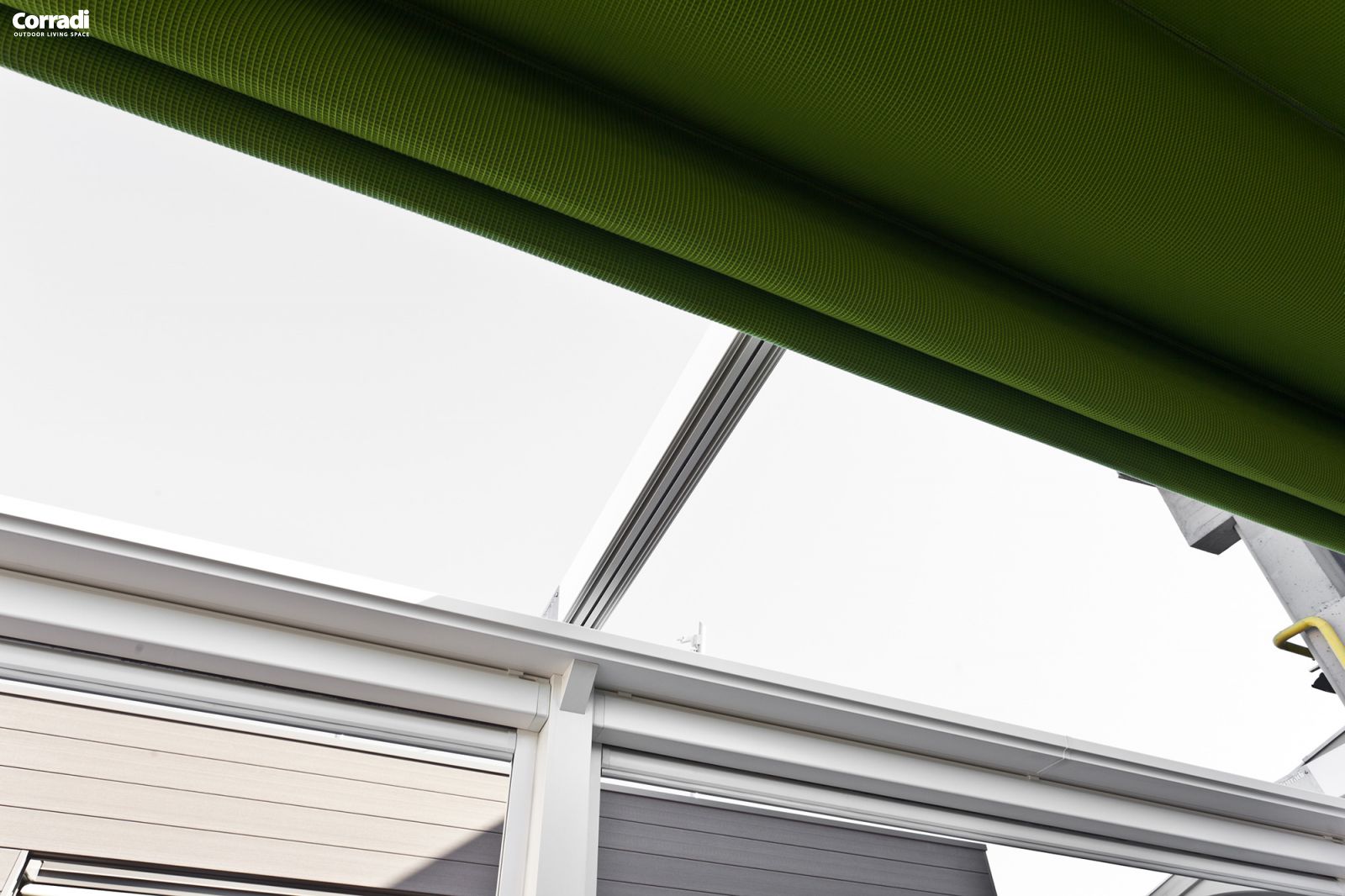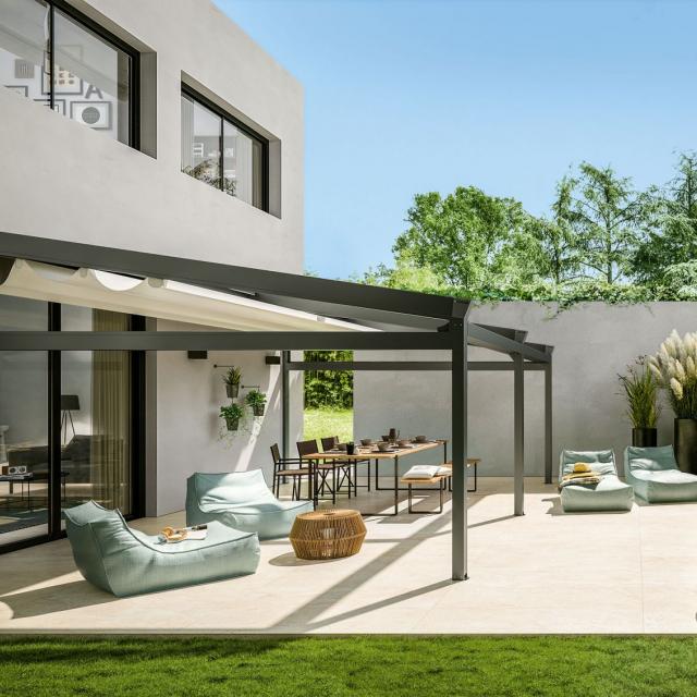 Plus d’espace pour vivre le plein air. Réalisée en aluminium et fixée à un mur de support, B-Space peut présenter une avancée jusqu’à 9 m.