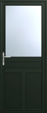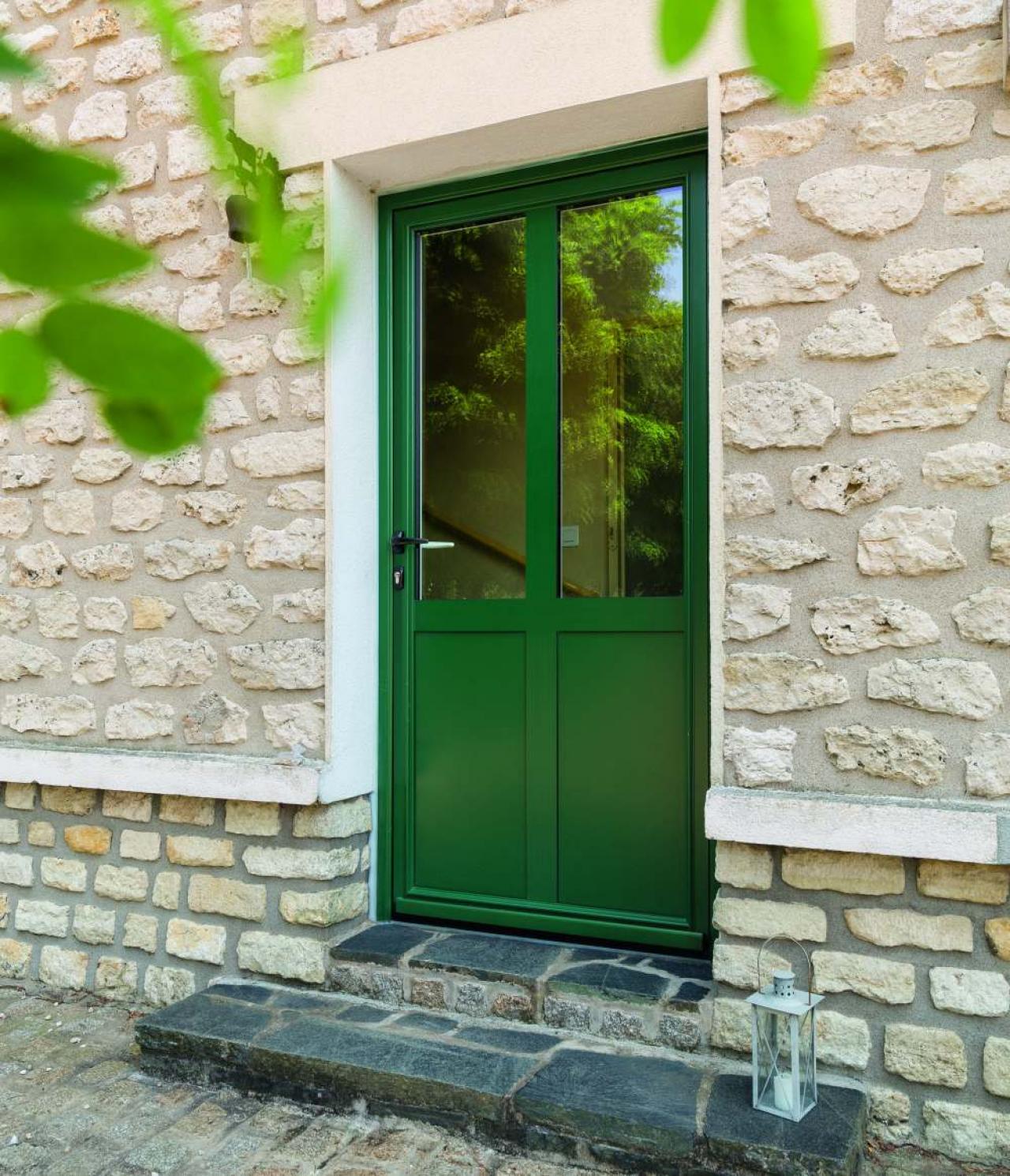Composez votre porte Classique avec panneaux de soubassements et vitrage en partie haute puis personnalisez à votre goût avec l’assemblage de meneaux et traverses.